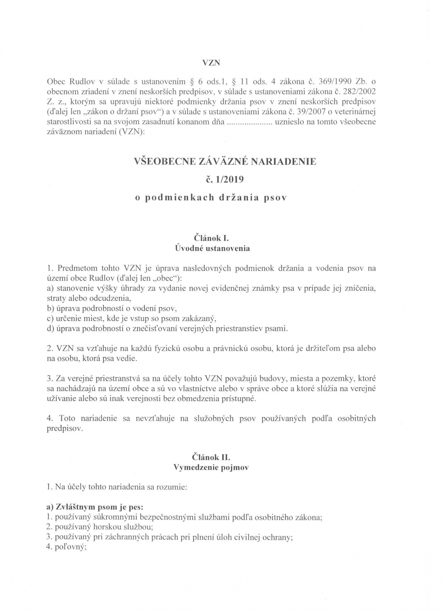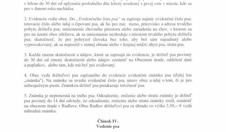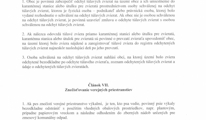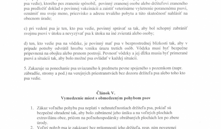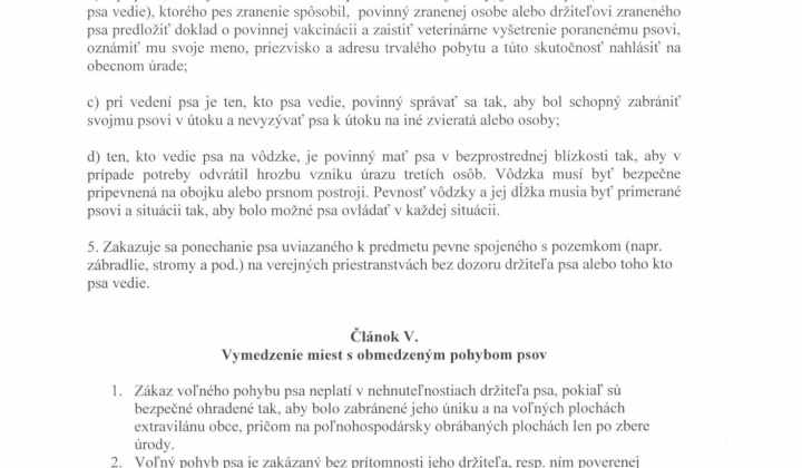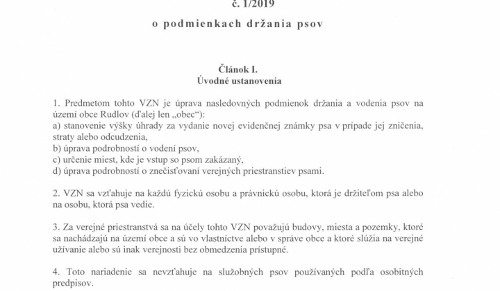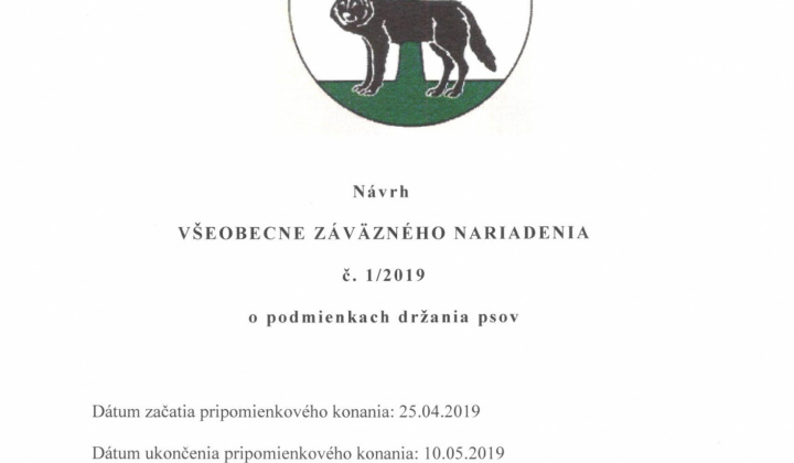 Návrh VZN č. 1/2019 o podmienkach držania psov