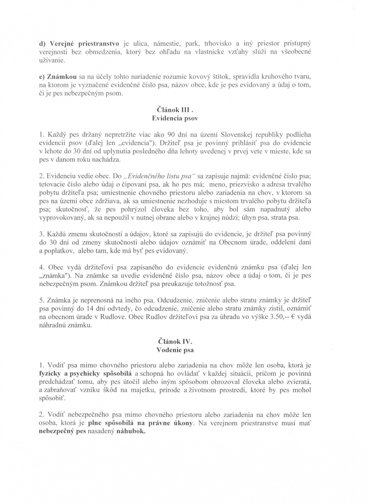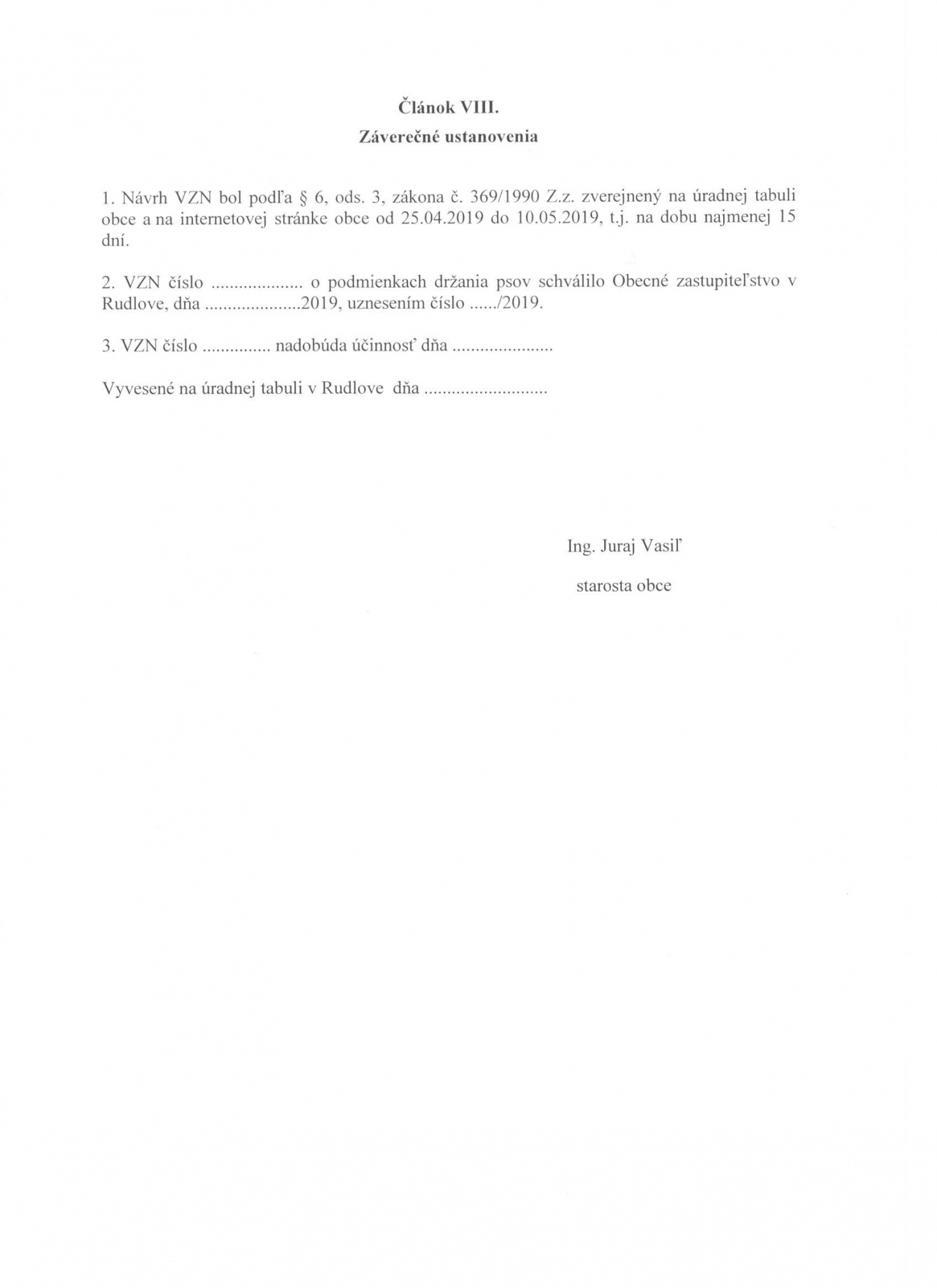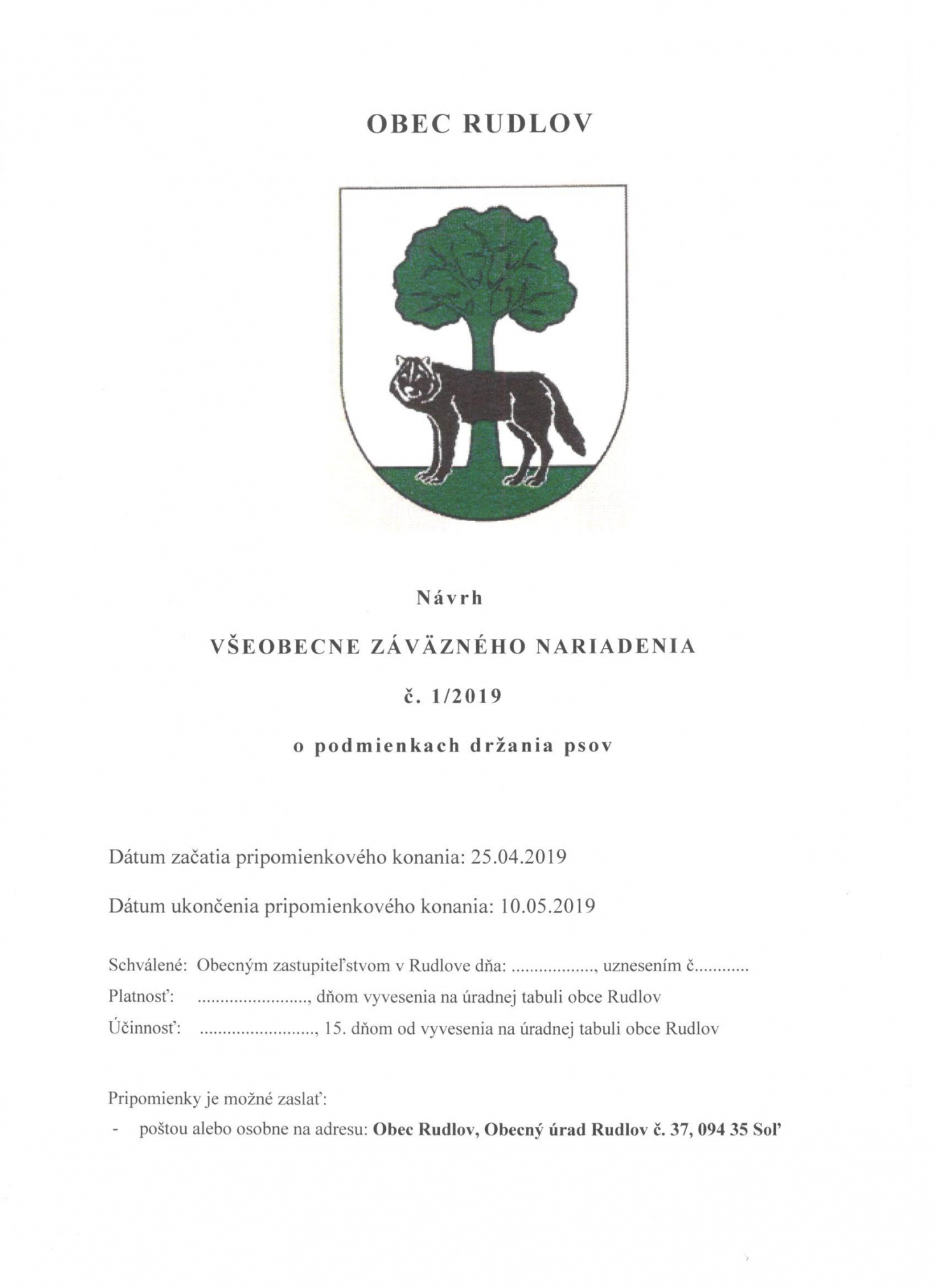 Návrh VZN č. 1/2019 o podmienkach držania psov