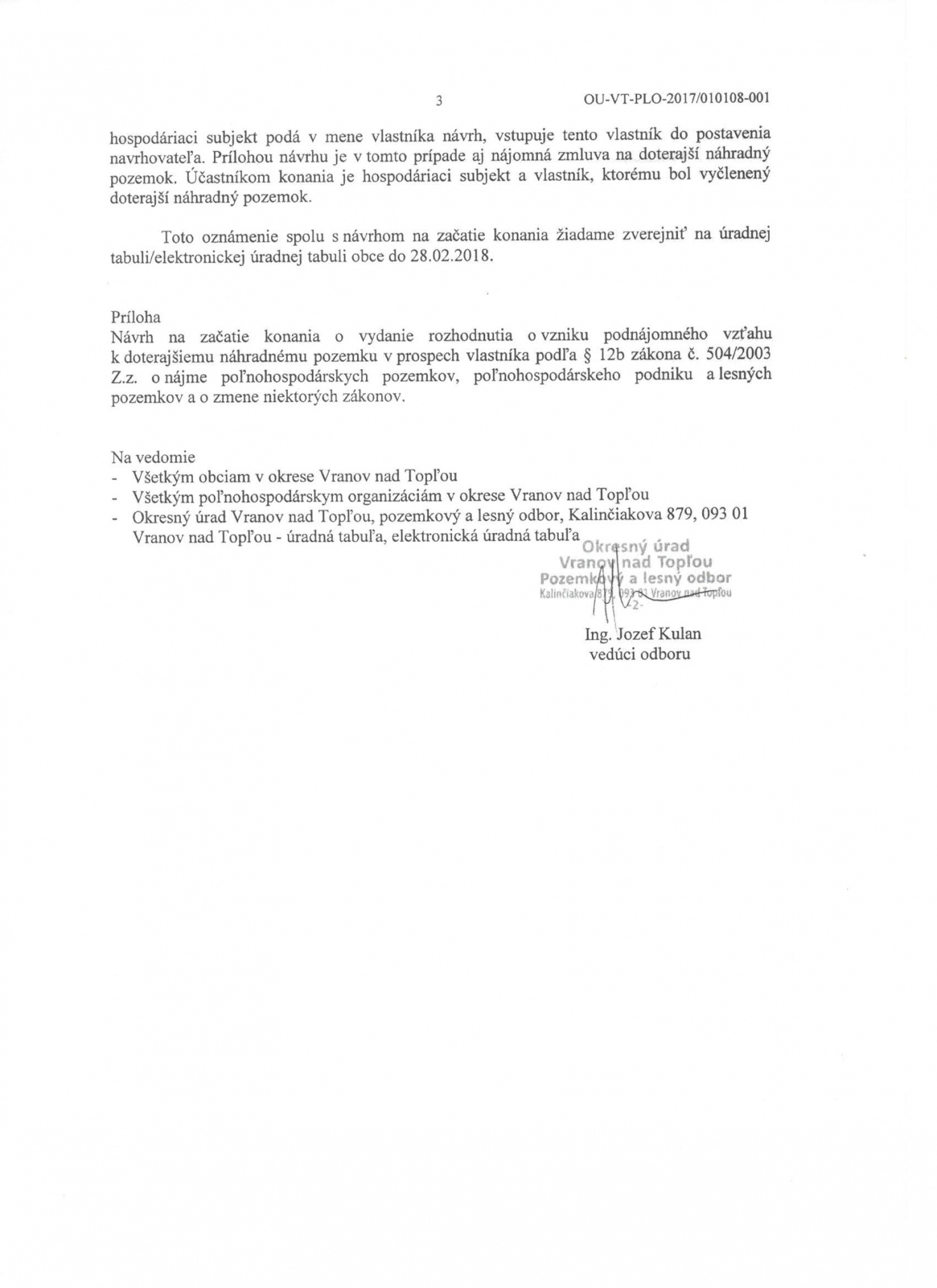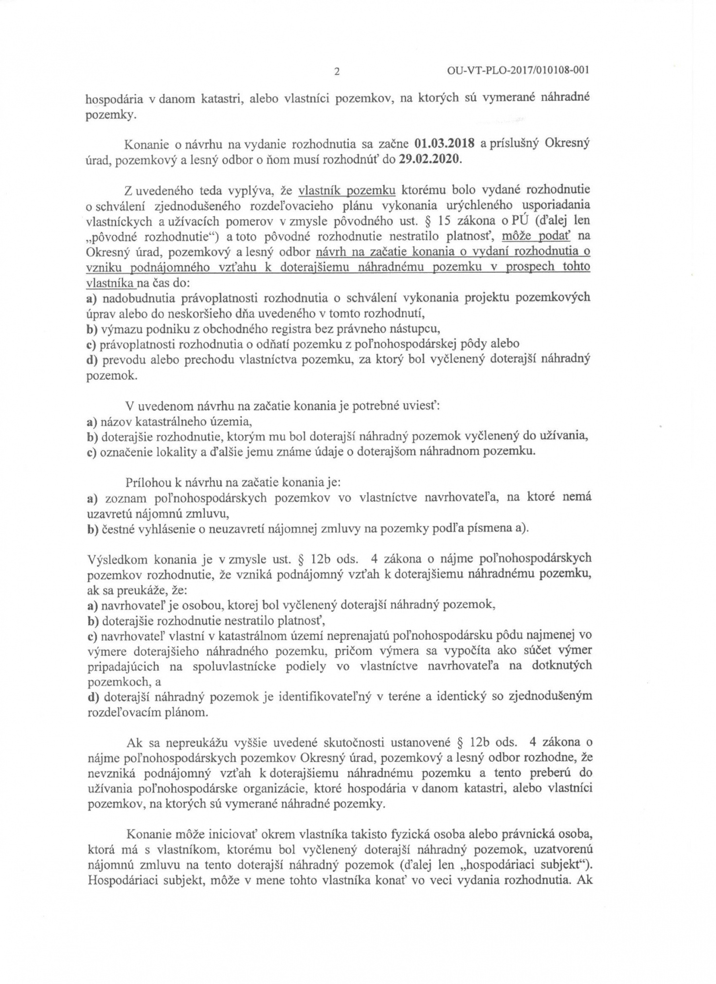 Okresný úrad VT – Oznámenie+návrh na začatie konania