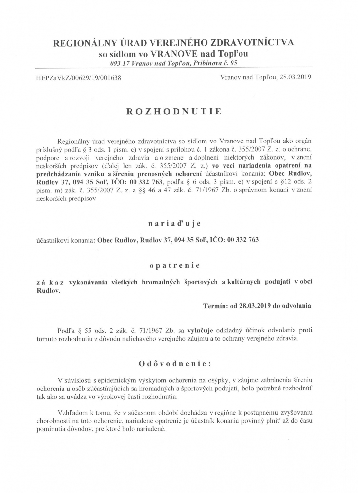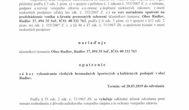 Opatrenie ÚZV SR pri ohrození verejného zdravia