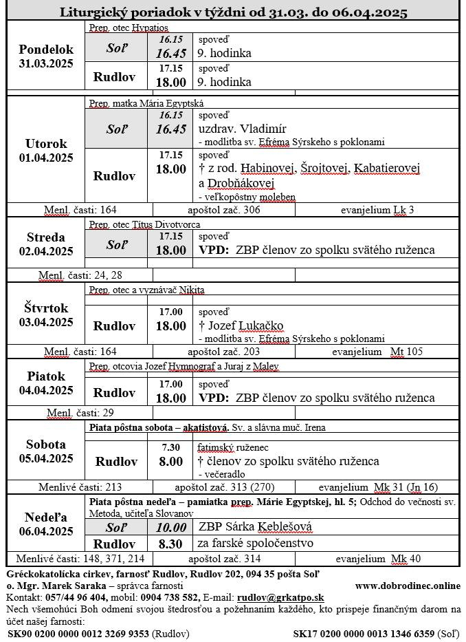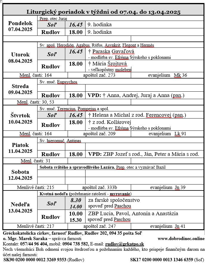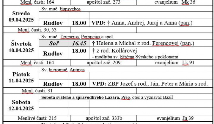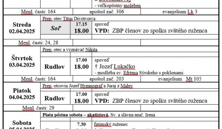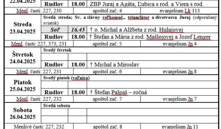 • - Liturgický program